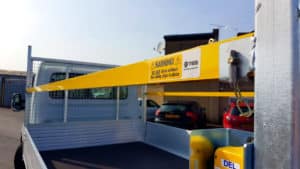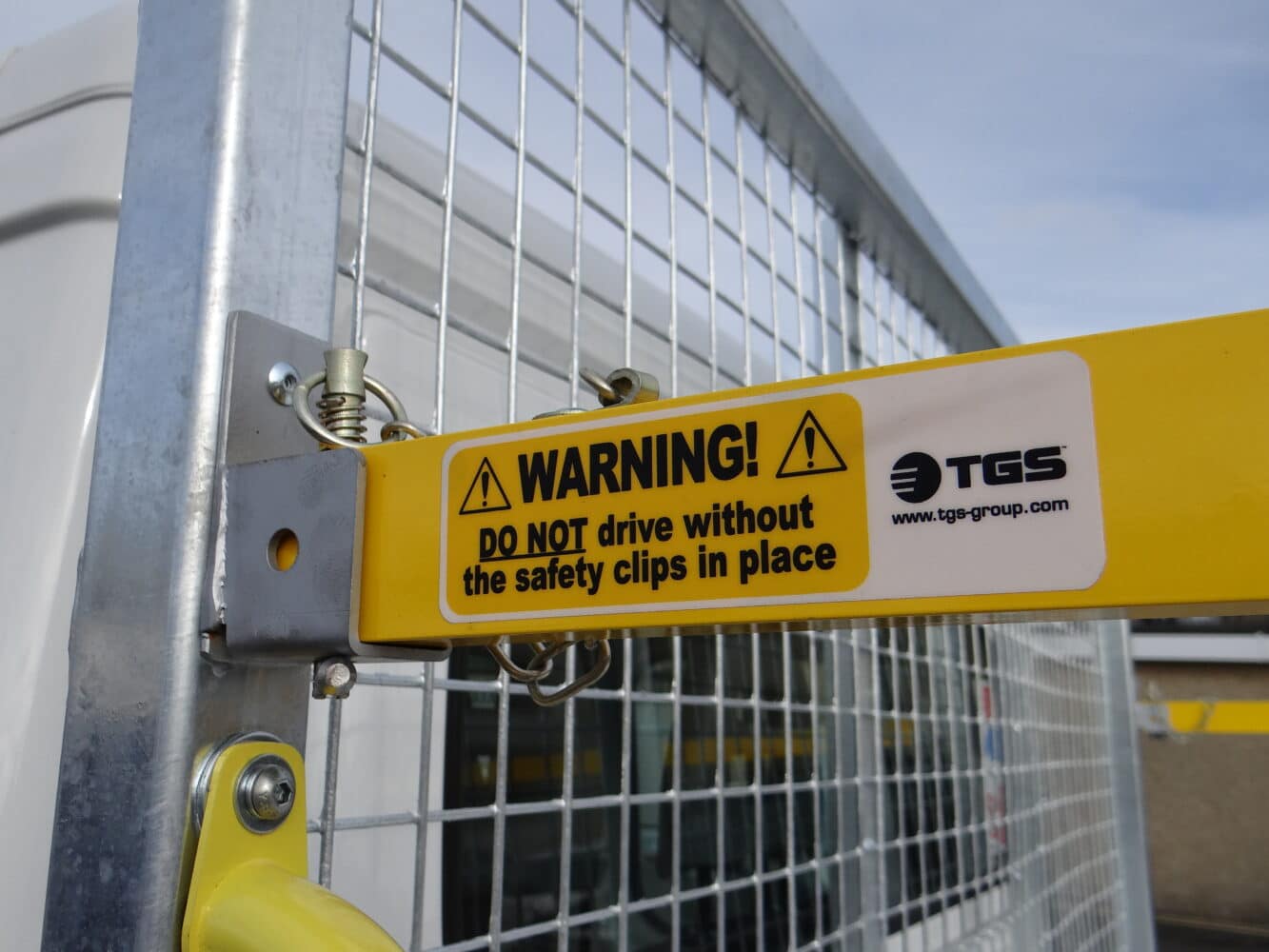 These brackets on the two rear pillars and gantry pillars for secure fitment of the fall arrest bar and fixed with Sword Pin & Chain – Ø9.5mm X 63mm