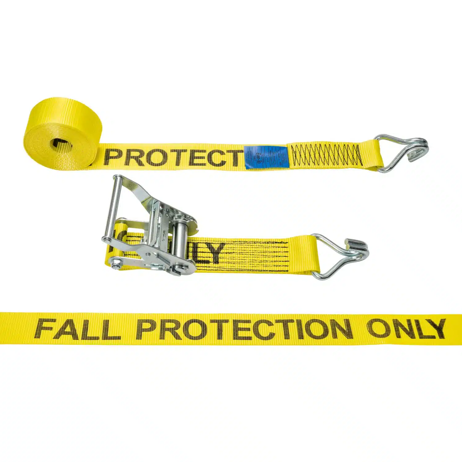 Durable fall protection strap with Ratchet buckle and Claw hook. Adjustable, OSHA-compliant, and ideal for trucks, trailers, and industrial work sites.