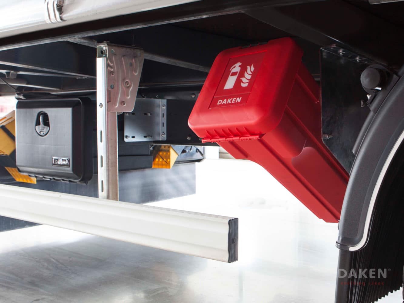 Ensure the safety of your fire extinguishers with the DAKEN SLIDEN fire extinguisher box—designed for durability and efficient use on the road. If this model does not meet your requirements, TransQuip offers a wide range of Daken fire extinguisher boxes, all designed to provide reliable protection in any environment.