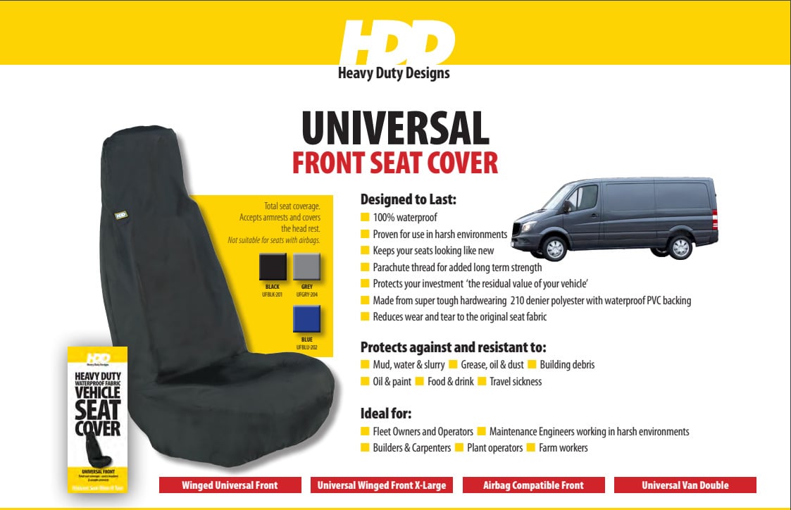 Made in the UK these covers are 100% waterproof so are ideal for saving your van seats not just from wear and tear but also from oil, grease, drink and food stains, dog hairs and general grime.