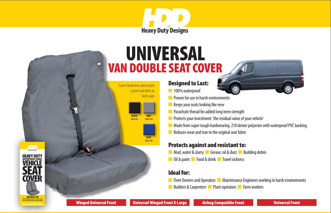 Made in the UK these covers are 100% waterproof so are ideal for saving your van seats not just from wear and tear but also from oil, grease, drink and food stains, dog hairs and general grime.