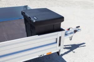 The Daken PITBOX Trailer Storage Box/Sand Box, measuring 655x 570x 520mm, particularly suited as a storage solution for trailers or as a Grit/Sand storage solution.