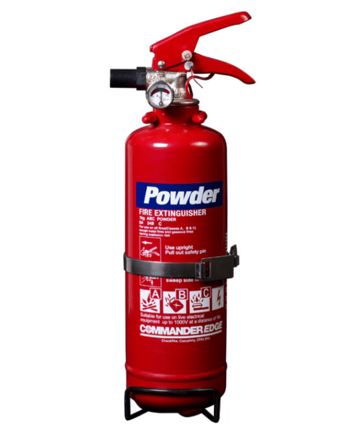 The CommanderEDGE 1kg ABC Dry Powder Fire Extinguisher with transport brackets features a fire rating of 13A 89B C, is Kitemarked to BS EN3, and comes with our full 5-year warranty.