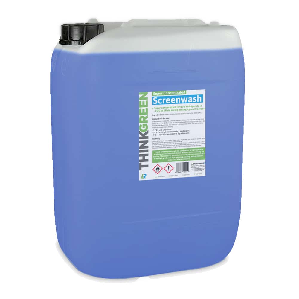 THINK GREEN Super Concentrated Screenwash in a 20-litre drum is a simple way of providing screenwash to commercial users. It is formulated to operate in temperatures as low as -15° C; however, this can be diluted for general UK conditions as per the recommendations below: